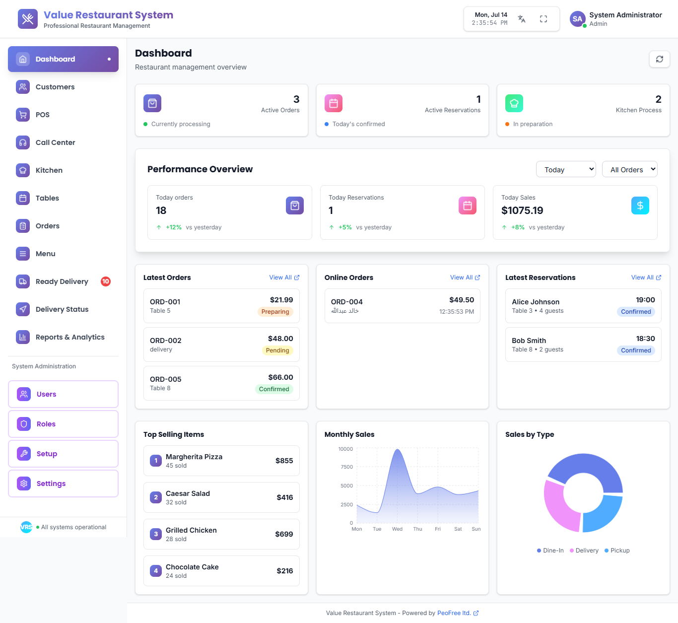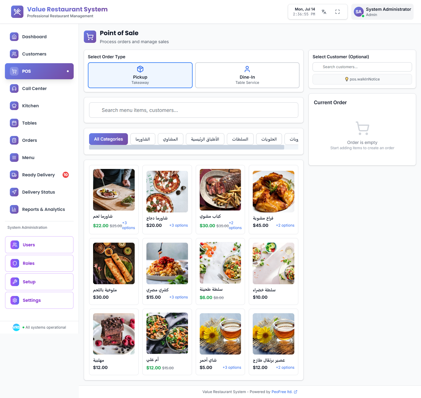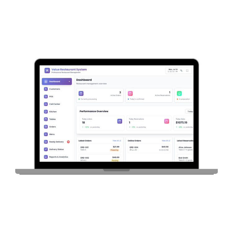 Value Restaurant System is an all-in-one restaurant management platform designed to unify POS, kitchen, delivery, and reporting — all from a modern and intuitive dashboard. Whether you run a single Restaurant or a multi-branch chain, Value gives you full control and visibility.