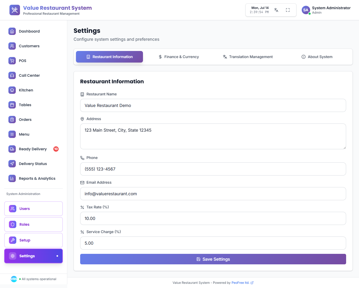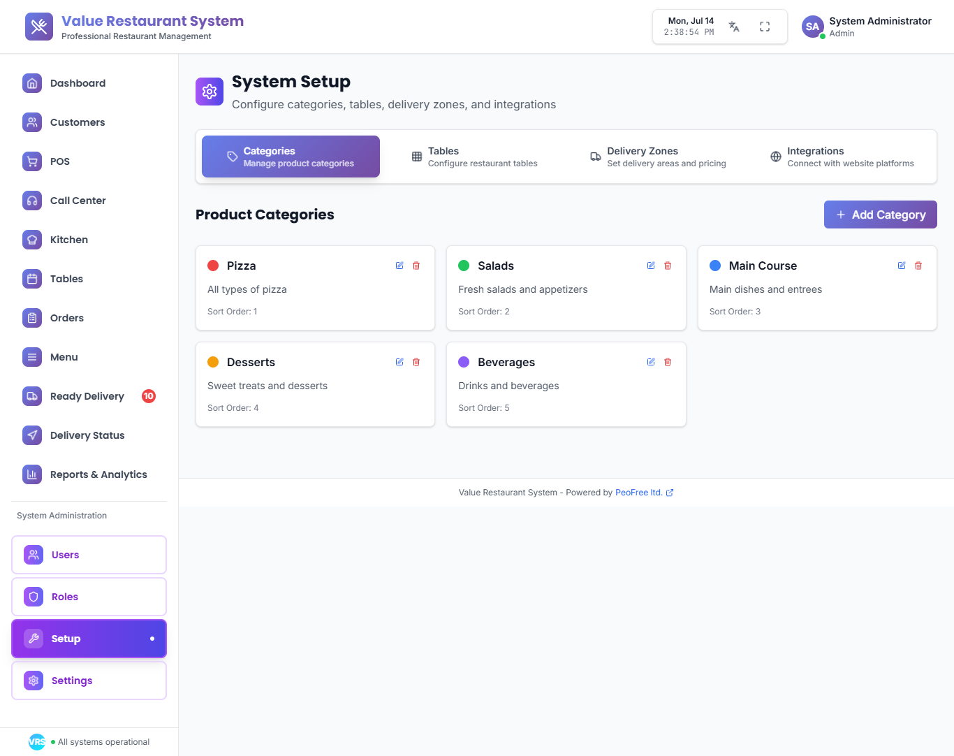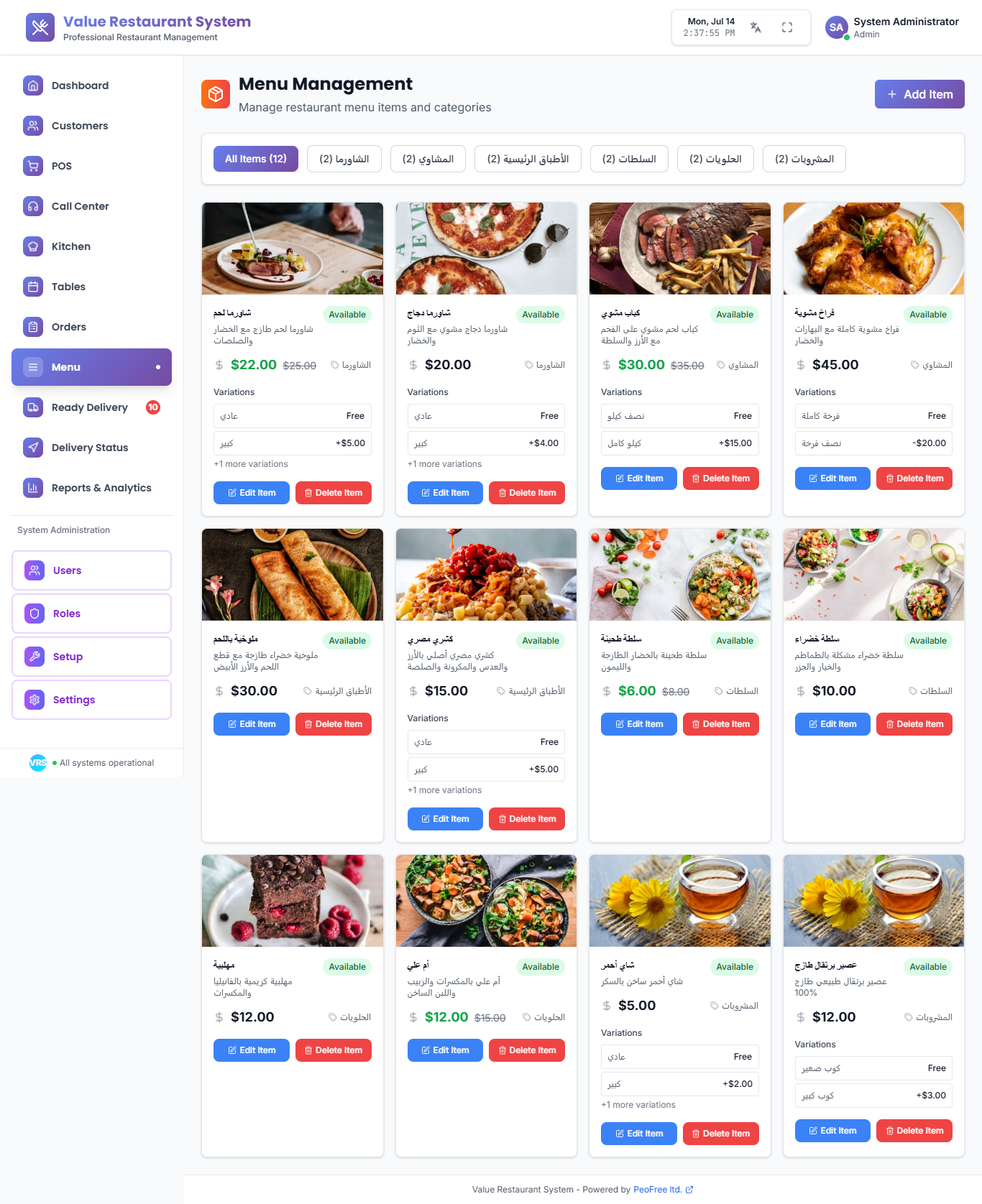 Value Restaurant System is an all-in-one restaurant management platform designed to unify POS, kitchen, delivery, and reporting — all from a modern and intuitive dashboard. Whether you run a single Restaurant or a multi-branch chain, Value gives you full control and visibility.